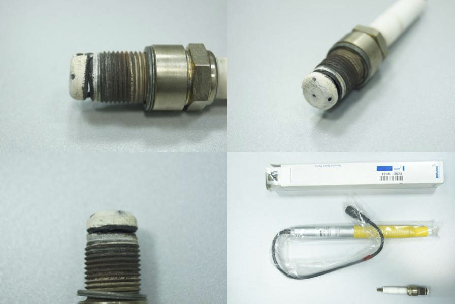 Во время обслуживания установки была обнаружена неоригинальная свеча зажигания, которая не рассчитана на работу в двигателях MWM. Использование такой свечи может стать причиной серьёзной поломки, простоя техники и, по результату, привести к дорогостоящему ремонту. Как выглядела данная свеча после наработки в 500 м/ч вы можете видеть на фото (разрушение форкамеры).